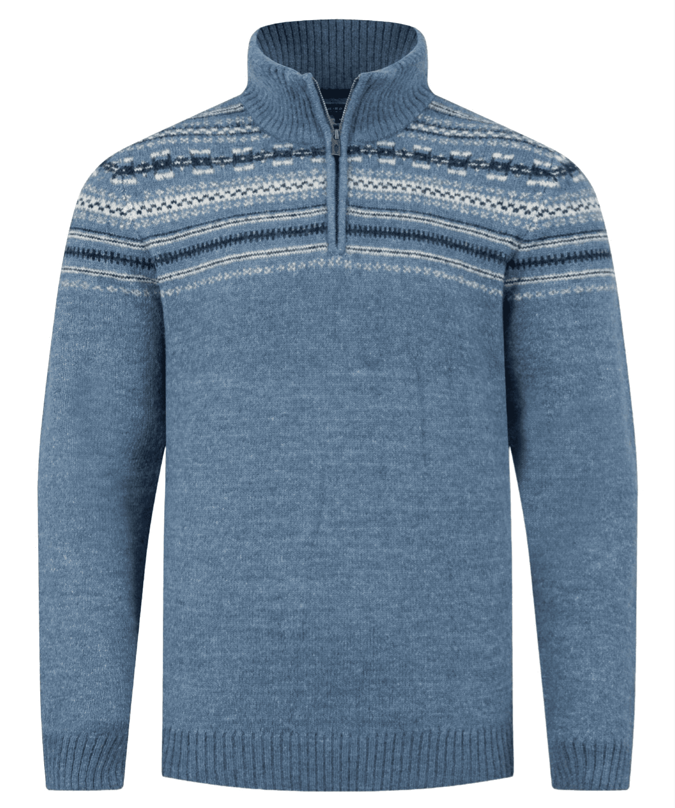 Larner 1/4 Zip Fair Isle Jumper Pale Denim